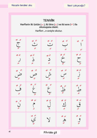 Ödev: __/__/____ İKİ ÜSTÜN Harflerin üzerinde bulunan eğik çift çizgiye iki üstün denir. Üstünde bulunduğu harfi “an” veya “en” sesiyle okutur. 42