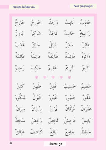 Ödev: __/__/____ İKİ ESRE Harflerin altında bulunan sola eğik çift çizgiye iki esre denir. Altında bulunduğu harfi “ın” veya “in” sesiyle okutur. 46
